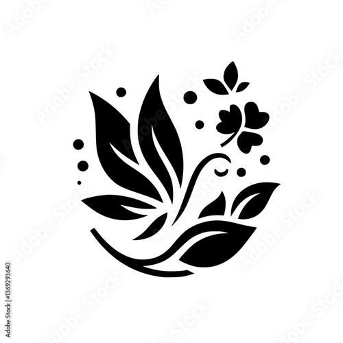 vector, botanical, silhouette, leaf, leaf, clover, shamrock, dot, black-and-white, graphic, design, elegant, minimalist, nature, floral, art, logotype, emblem, illustration, decoration, ornament, stencil, pattern, spa, wellness, branding