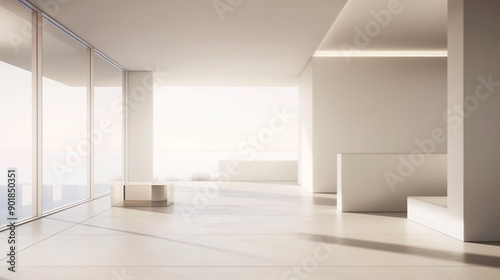 Minimalist Buildings and Interiors with Clean Lines and Neutral Colors. Copyspace