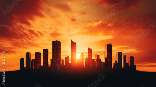 Minimalist City Skyline Silhouette with Fiery Dramatic Sunset