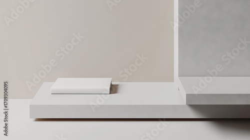 minimal, modern, simple, clean, geometric, box, platform, beige, grey, white, off-white, square, rectangle, shadow, light, neutral, background, surface, display, product, showcase, design, architecture, abstract, contemporary, style, aesthetic, muted, tone, texture, form, shape, composition, arrangement, scene, space, room, interior, illustration, rendering, presentation, elegance, sophistication, subtile, flat, contrast, monochrome