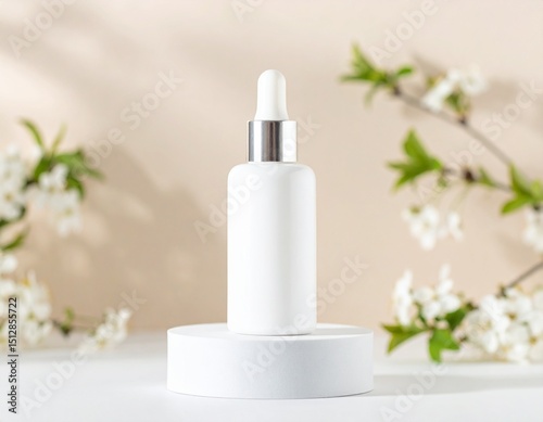 Minimalist cosmetic bottle mockup with neutral tones, perfect for skincare branding or product presentation.