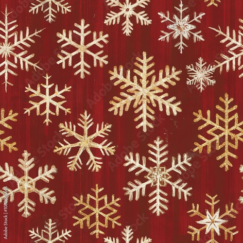 Minimalist decorative background with endless pattern - stars and snowflakes on red background