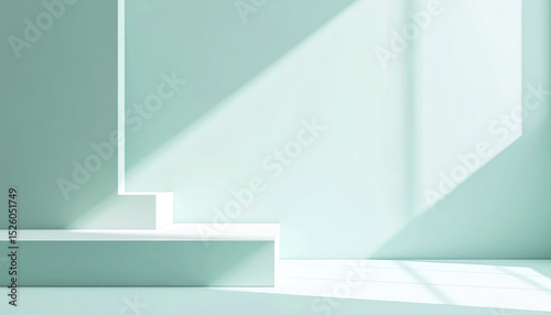 Minimalist design with light cyan walls and geometric shapes creating shadows