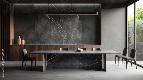 minimalist, dining, area, steel, stone, table, home, three-dimensional, render, interior, design, modern, furniture, decor, architecture, living, room, minimalism, contemporary, industrial, simple, clean, elegant, stylish, space, indoor