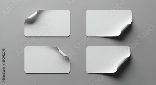 Minimalist display featuring four blank cards with corner peels and subtle shadow effects on soft