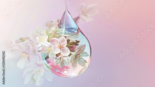 Minimalist eco concept with flower indise a water drop, on pastel background, eco natural concept