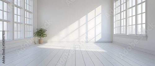Minimalist Empty White Room with Smooth Flooring and Abundant Natural Light
