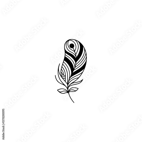 vector, feather, minimalist, line art, black-and-white, illustration, design, decoration, simple, elegant, nature, art, graphic, logotype, symbol, emblem, tattoo, pattern, doodle, abstract, zen, spirituality, invitation