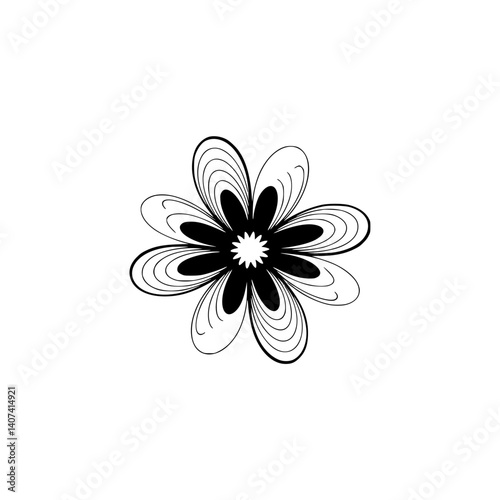 vector, flower, floral, flower petals, black-and-white, monochrome, minimalist, design, geometric, circular, symmetry, simple, clean, modern, elegant, illustration, graphic, logotype, branding, pattern, decoration, isolated, nature, art, abstract