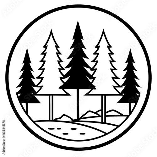 Minimalist Forest Emblem Pine Tree Line Art for Eco Brands