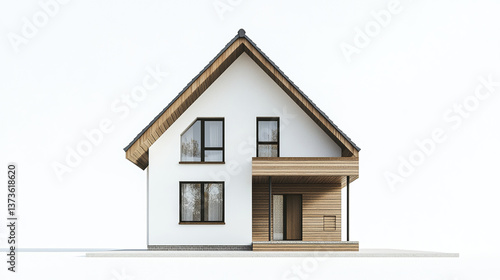 Minimalist house with wooden accents on white background