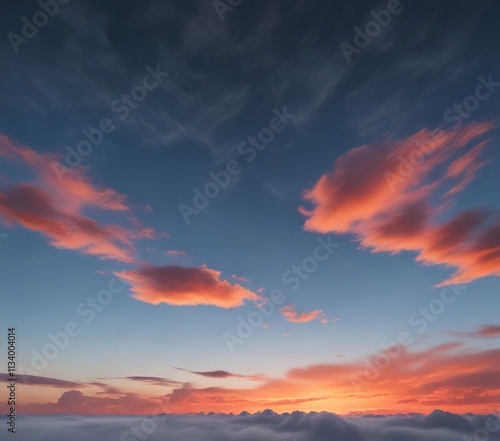 Minimalist image of an empty blue sky with red and orange clouds, featuring a simple white or gray background to emphasize the colors, empty, cloud
