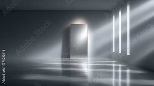 Minimalist Interior with Door and Light Rays in Empty Room