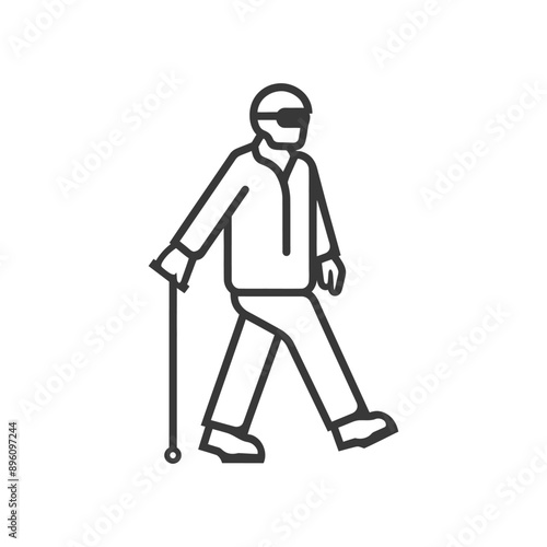 minimalist, line art, line, art, icon, blind, elderly, walk, with, a, cane, logotype, symbol