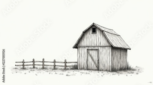 barn, rustic, countryside, line art, minimalist, farm, agriculture, rural, landscape, nature, silhouette, simple, graphic, illustration, black-and-white, drawing, architecture, country, field, sky, tree, wooden, vintage, old, farmhouse
