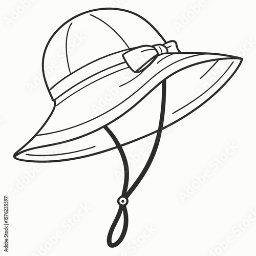 Minimalist Line Drawing of a Wide-Brimmed Sun Hat with Chin Strap for Fashion and Sun Protection
