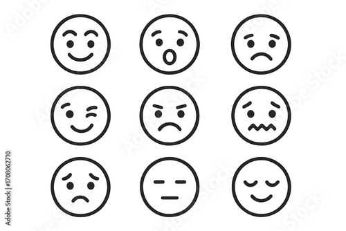 emoticon, face, icon, set, minimalist, linear, expression, vector, mood, feeling, happy, sad, angry, smile, smiley, cartoon, character, feedback, rating, emotion, simple, outline, graphic, symbol, avatar, design, isolated, collection, pack, web, cute, modern, black, white, review, positive, negative, neutral, surprised, shocked, winking, anxious