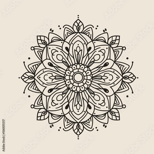 Minimalist Mexican-Inspired Mandala Line Art with Floral Patterns, AI Generation