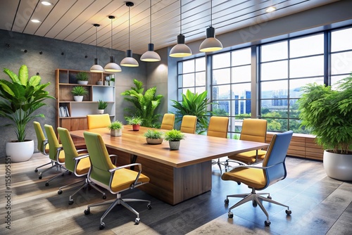meeting, minimalist, plant, interior design, office space, desk, table, chair, meeting room, contemporary, decor, business, professional, work, workspace, design, photo, photo, image, artificial intelligence, digital artwork, still life, nature, green, lighting, texture, composition, sharpened, depth of field, realistic, photorealistic, rendering, three-dimensional, hi-res, business meeting, office furniture