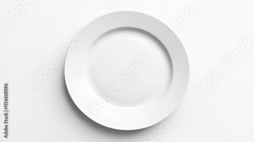 Minimalist overhead view of a plain white ceramic plate on a bright background perfect for food styling and culinary presentations