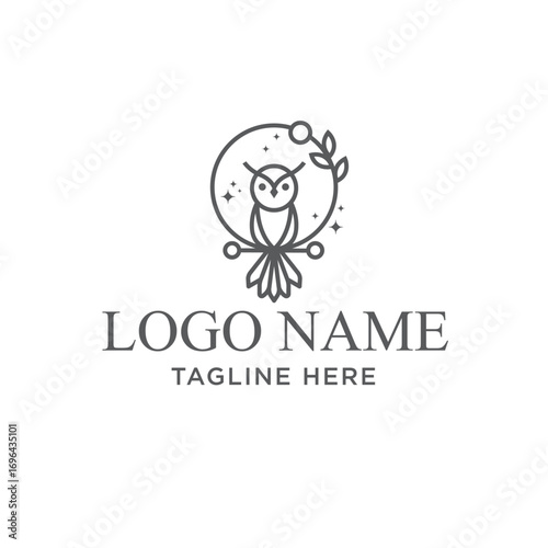Minimalist Owl Logo Design with Circle and Leaf Elements