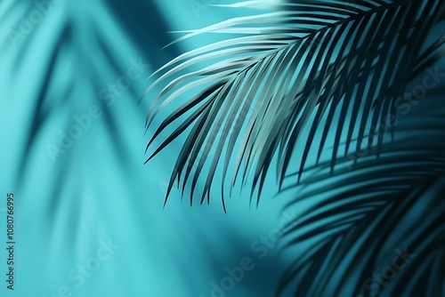 Minimalist palm leaves background. Tropical summer leaf shadow design. Summer sale banner.