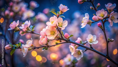 Minimalist Panning Over Quince Tree Blossom in Springtime Serenity