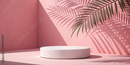 pink, background, shadow, palm, dais, tropical, summer, minimalist, display, fashion, light, sun, design, scene, cosmetic, branding, creative, template, presentation, elegant, soft, warm, abstract, leaf, pedestal, clean, style, pastel, modern, geometry, aesthetic, shape, layout, space, advertisement, concept, frame, product, placement, three-dimensional, minimal, artistic