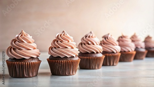 Minimalist Pink Brown Swirled Chocolate Cupcake Row Photography
