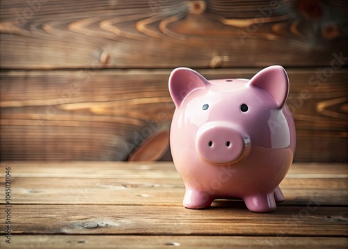 Minimalist Pink Piggy Bank on Wooden Surface – Simple Savings Concept in Soft Lighting