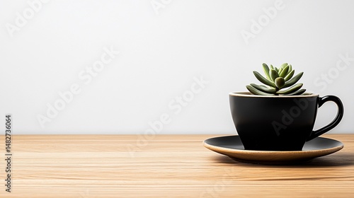 succulent, plant, cup, pot, black, table, minimal, wood, saucer, tabletop, botanic, flora, still, freshness, simplicity, decoration, indoor, garden, growing, lifestyle, ornamental, background, natural, botanical, calmness, growth, modern, zen, home, interior, surface, desk, foliage, greenery, nature, organic, serenity, empty, mock, space, wooden, white, design, element