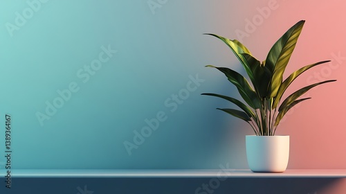 plant, pot, shelf, wall, background, minimal, simple, modern, interior, design, room, home, decor, style, aesthetic, colourful, vibrant, blue, pink, green, leaf, foliage, nature, light, shadow, space, empty, clean, serene, calm, tranquil, pastel, colours, texture, smooth, bright, elegant, artwork, image, photo, illustration, graphic, art, display