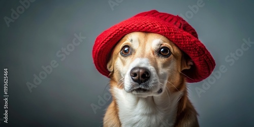 Minimalist Portrait: Dog in Red Hat - Stylish Pet Photography