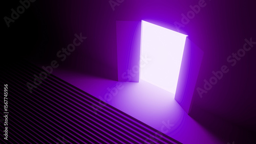 door, open, light, purple, room, bright, shining, doorway, floor, striped, minimalist, interior, design, architecture, hope, opportunity, future, new, beginning, way, path, exit, entrance, discovery, mystery, surreal, abstract, concept, background, modern, contemporary, empty, space, perspective, three-dimensional, render, illustration, digital, art, glowing, illumination, dark, shadow, contrast, simple, clean, geometric, shape, colours