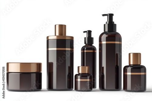 minimalist set of cosmetic product bottles and jars mockup on white background