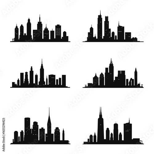Minimalist Silhouette of Famous City Skyline with Skyscrapers and High-Rise Buildings