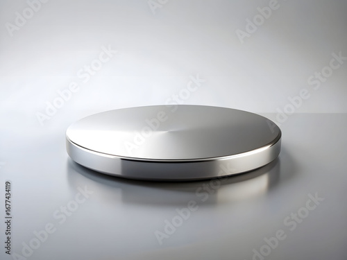 Minimalist Silver Disc Modern Design Circular Metal Brushed Finish Reflective Light Clean Aesthetic