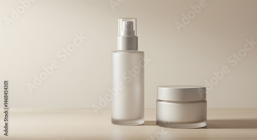Minimalist Skincare Products Displayed on a Soft Surface with Neutral Background Lighting