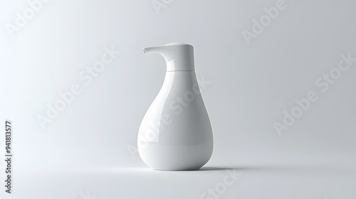 Minimalist Soap Dispenser: A simple, white soap dispenser with a clean design, centered on a white background, with soft lighting to enhance its form.