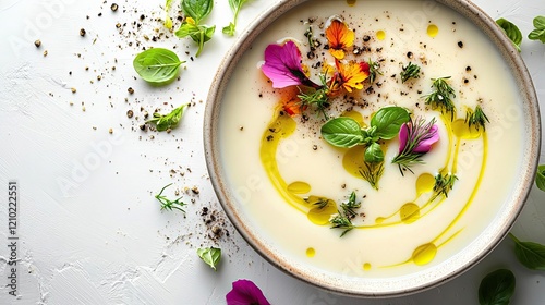 soup, oil, eatery, receipe, garnish, drizzle, bold, delicate, herb, nourish, ingredient, aroma, freshness, culinary, cream, modern, epicure, design, texture