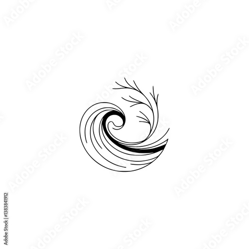 vector, abstract, swirl, line art, minimalism, black-and-white, nature, branch, logotype, design, elegant, modern, simple, geometric, wave, circular, dynamic, clean, organic, illustration, branding, pattern, texture, decorative, calm, floral