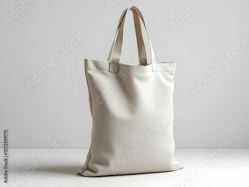 Minimalist tote bag made of ecru fabric on white background displaying simplicity and style for sustainable shopping.