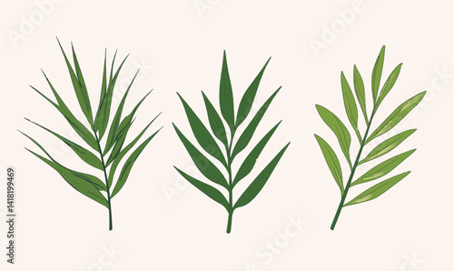 Minimalist Tropical Jungle Leaf Vector Set with Green Grass Vegetation