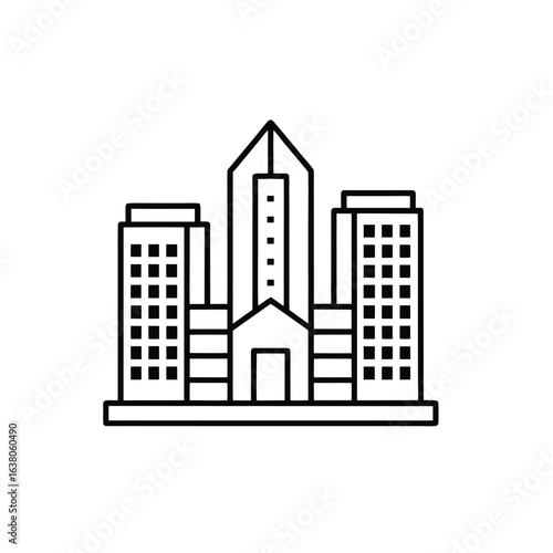 Minimalist Urban Cityscape in Monochrome Line Art Style