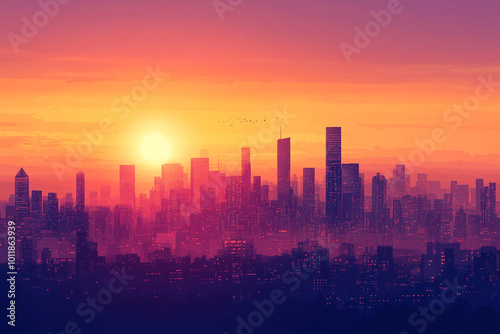minimalist, city landscape, sunset, skyline, modern, urban, silhouette, architecture, city skyline, orange sky, contemporary, calm, serene, stylish, building, horizon, peaceful, warm tones, art, graphic art, elegant, digital artwork, artistic, clean, city scene, city landscape, creative