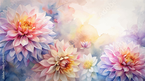 Minimalist watercolor background of dahlias flowers