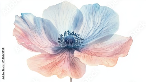 Minimalist watercolor flower in soft pastel hues, delicate hand-painted floral art, isolated on white