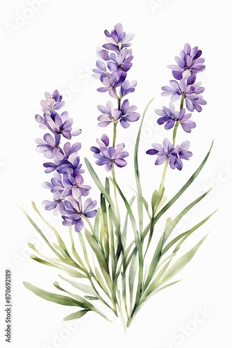 wildflower, watercolor, minimalist, white background, purple, lavandula, green leaf, modern art, spring flower, natural beauty, minimalism, tranquil scene, fine art, digital artwork
