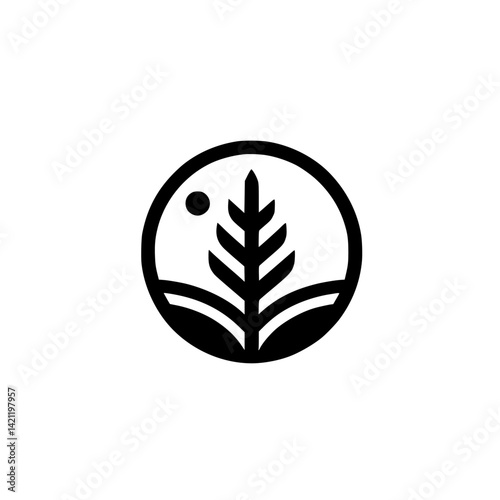 vector, wheat, leaf, plant, grain, agriculture, farm, food, organic, nature, circle, logotype, icon, minimal, modern, simple, black-and-white, graphic, design, emblem, branding, environmentally friendly, sustainable, business, illustration