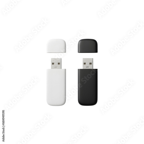 Minimalist White and Black USB Flash Drives in white transparent png background cutout